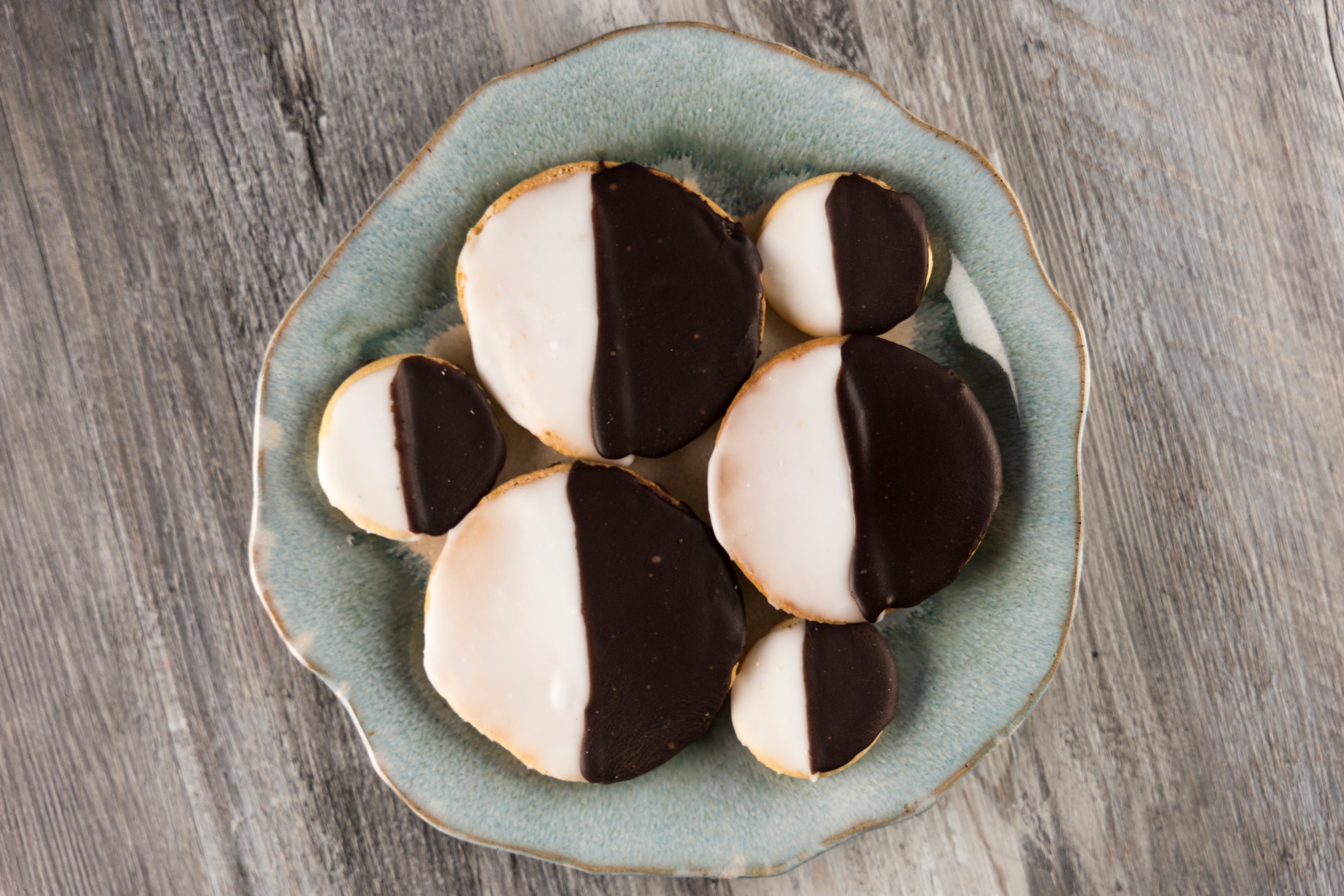 Perfect for satisfying your sweet tooth without overindulging. Indulge in the perfect bite-sized treat with our Mini Black & White Cookies. These cookies combine the delicious flavors of rich chocolate and creamy vanilla in every bite. Packed in 1 pound containers.