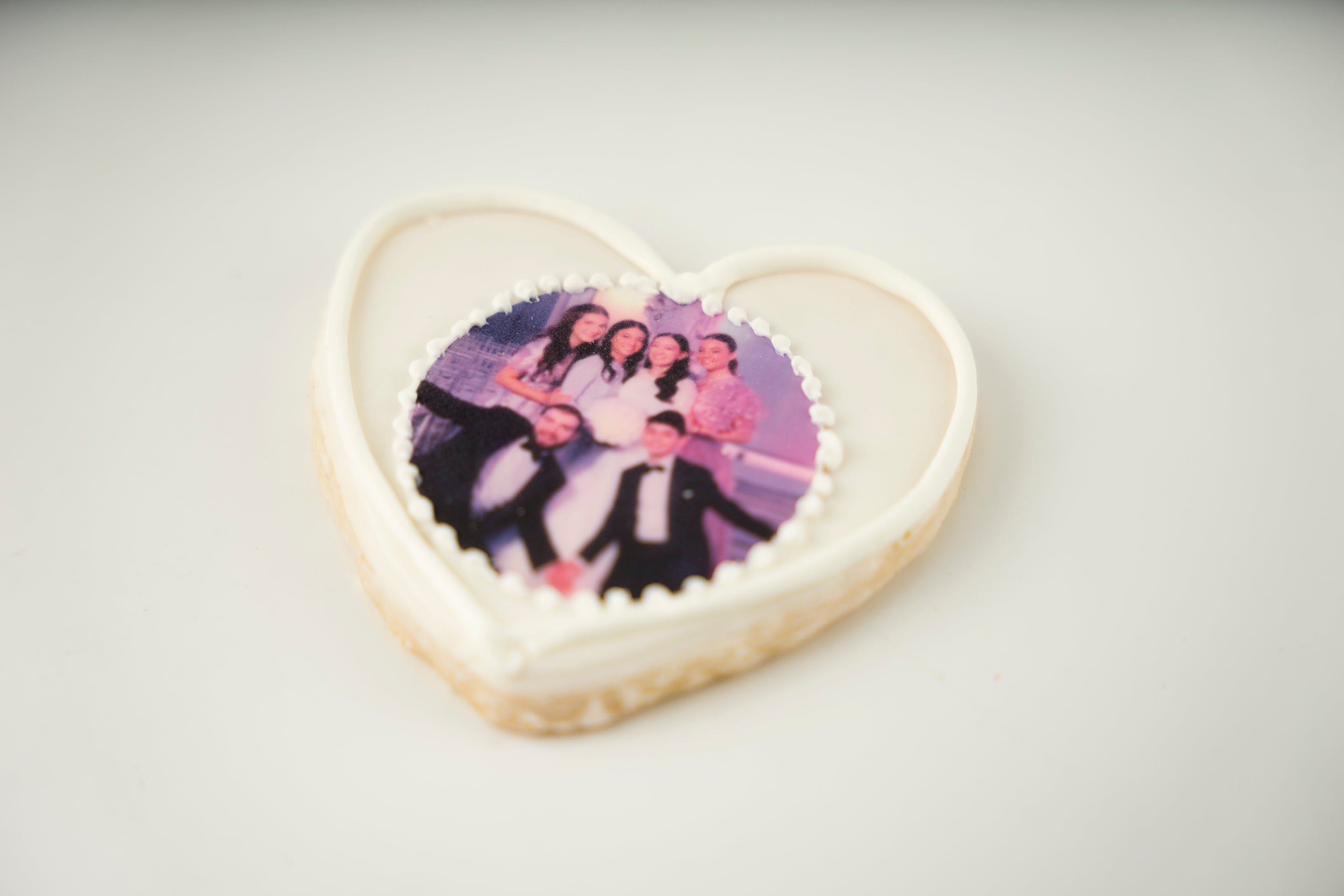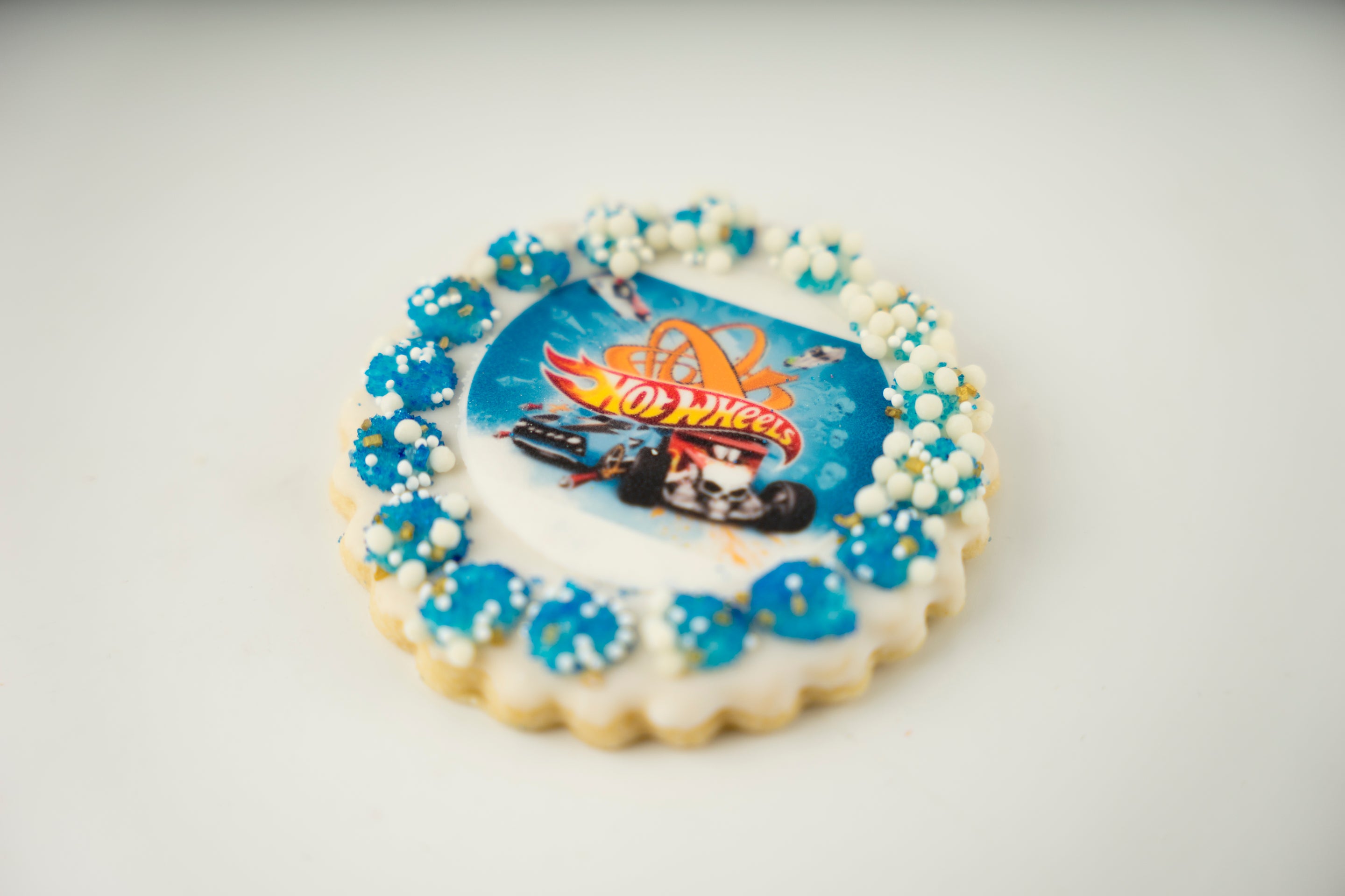 Send us your high resolution picture or logo with your order number to info@butterflake.com and we will print your picture or logo on edible paper on a delicious 3"-4" sugar cookie. We can also do other decorations and piping to make your event special. Cookies can also be wrapped and ribboned if you like!